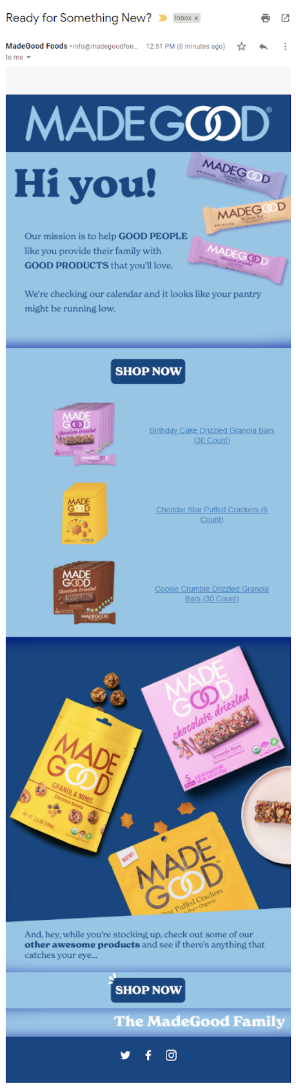 DTC goals were overachieved by ensuring that MadeGood’s consumer needs were immediately addressed: